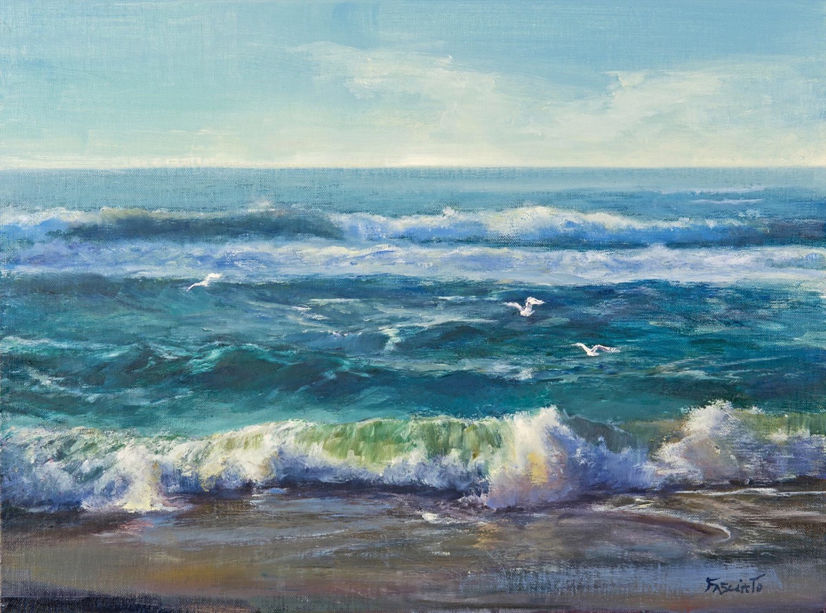 - Michelle Jung, Breaking Waves Oil on canvas, 12″ x 24″. $5,500 framed.