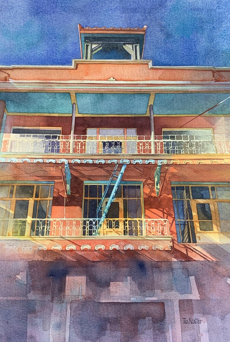 - Tia Wallace Kratter, Grant Street Hues Watercolor, 17″ x 12″. SOLD.