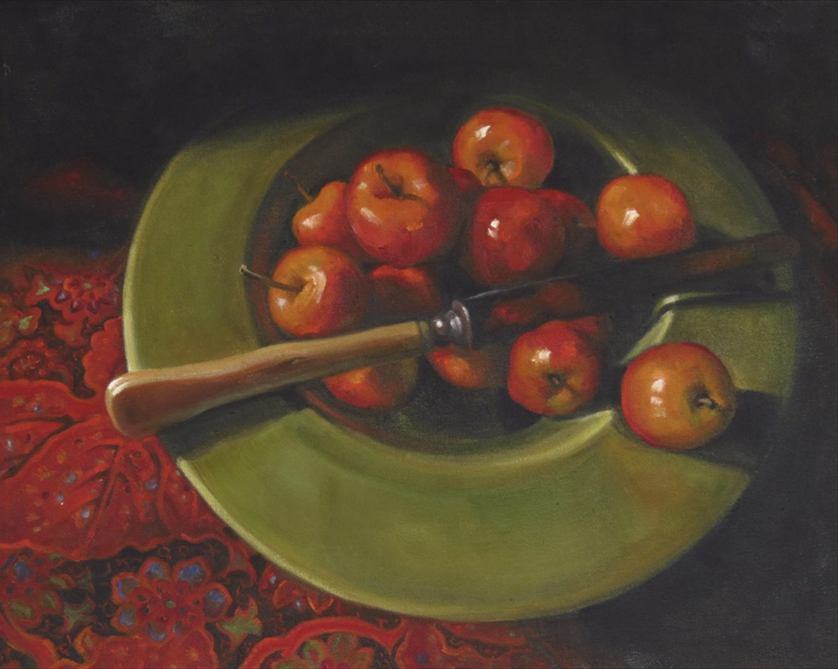 - J. R. Nelson, Lady Apples Oil on canvas, 16″ x 20″. $1,550 framed.