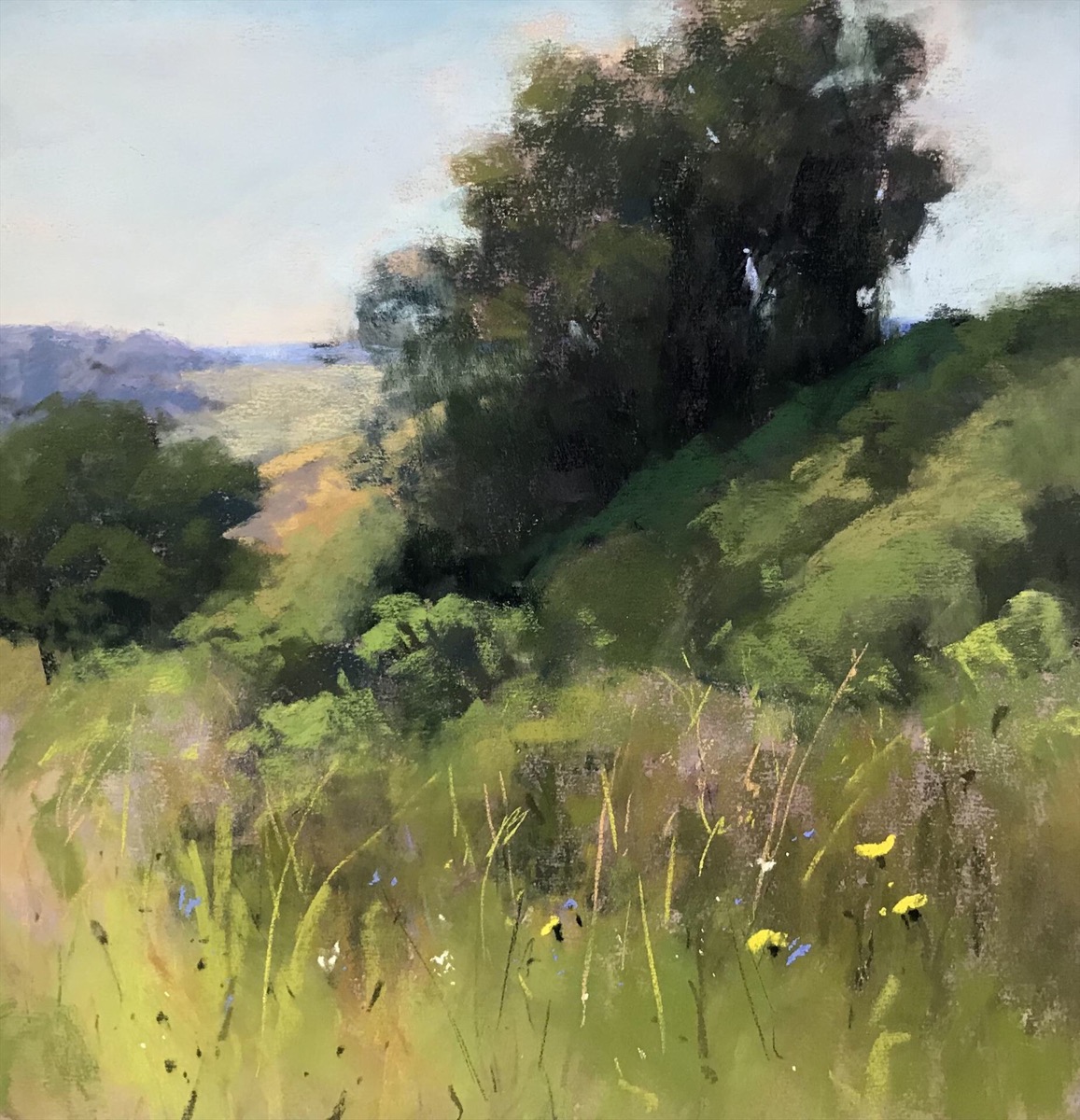 - Teresa Ruzzo, Spring Grasses Pastel on sanded paper, 12″ x 12″. SOLD.