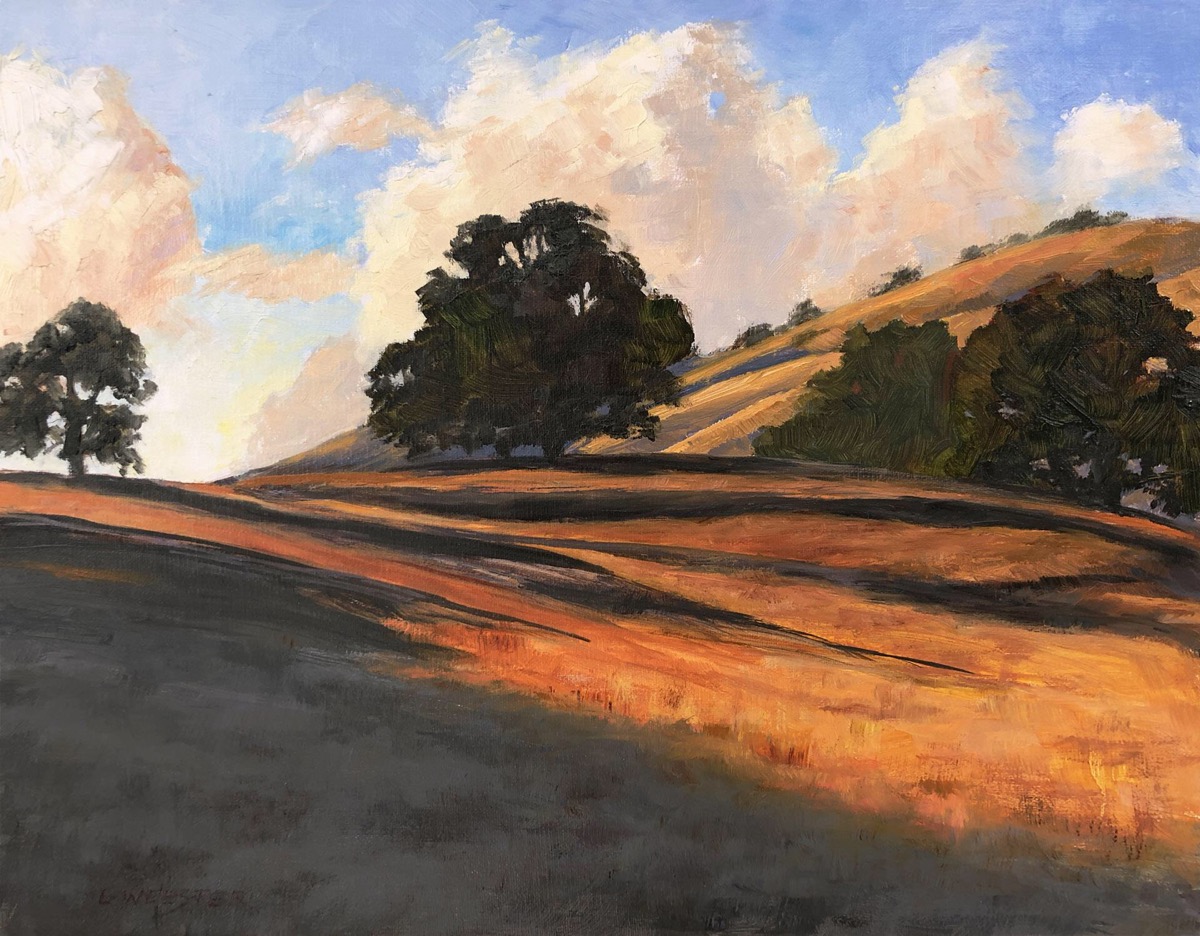 - LaRhee Webster, Coastal Hills with Fog Rising Oil on linen, 11″ x 14″. $1,450 framed.