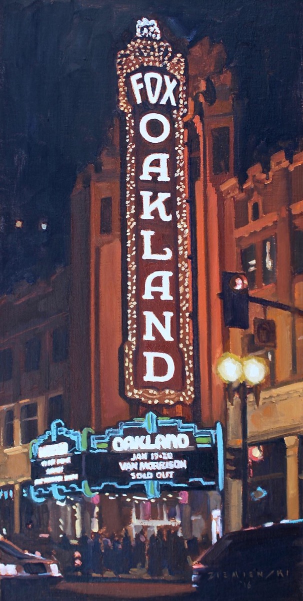 - Dennis Ziemienski, An Evening at the Fox, Oakland Oil on canvas, 24″ x 12″. $4,600 framed.
