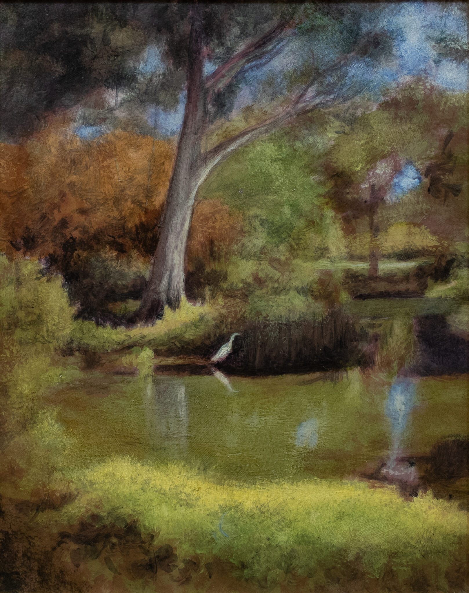 Oil on panel, 8″ x 10″. $1,300 framed.