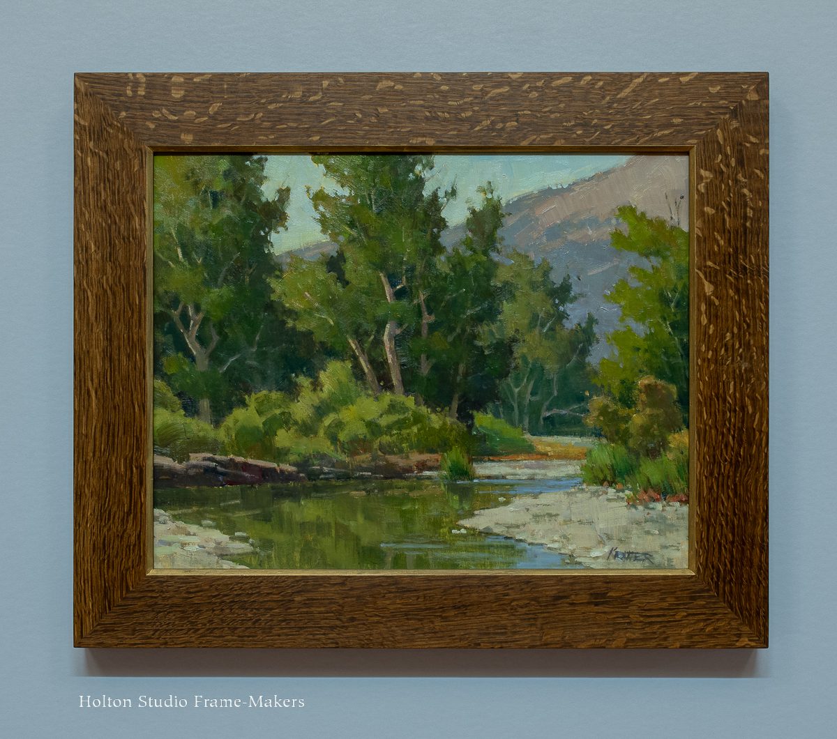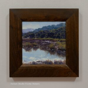 Oil on linen panel, 8″ x 16″. $2,500 framed.