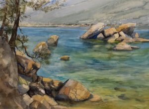 Watercolor on paper, 8″ x 10″. $1,800 framed.