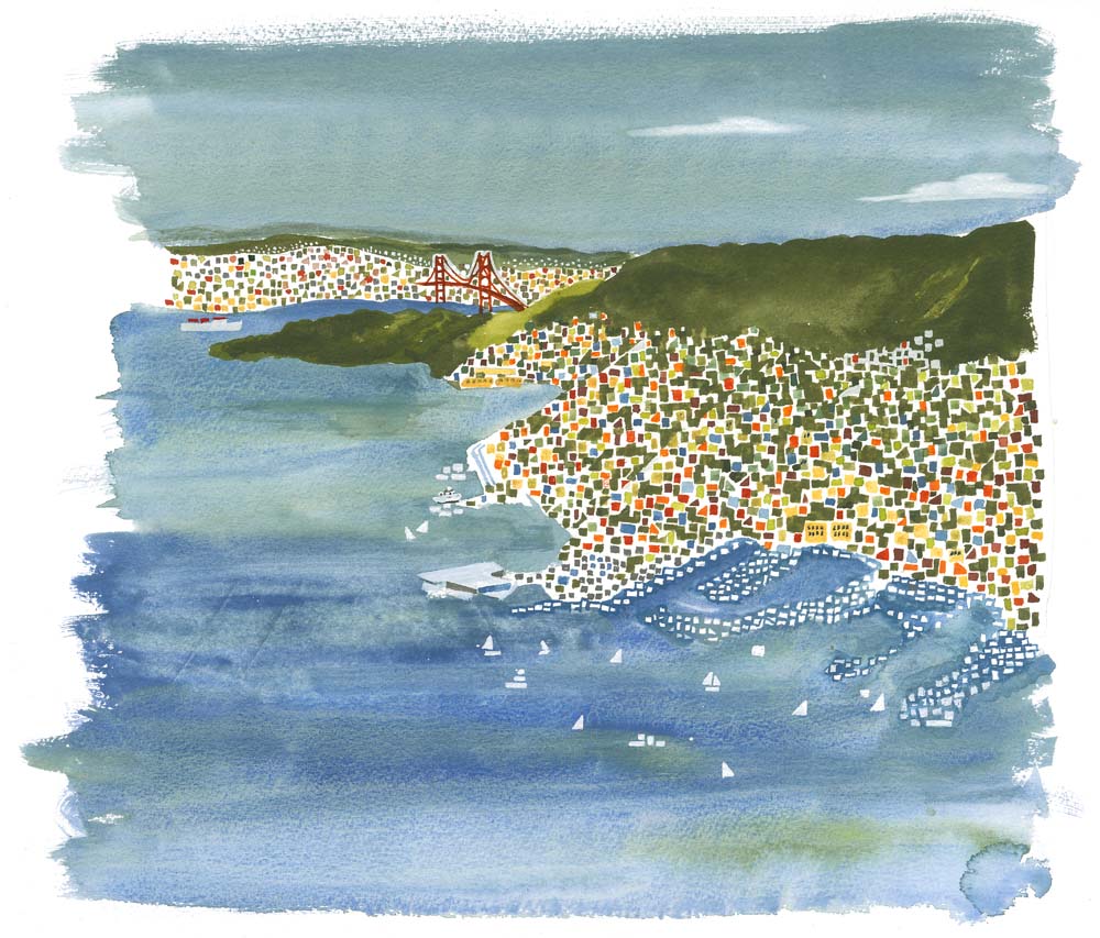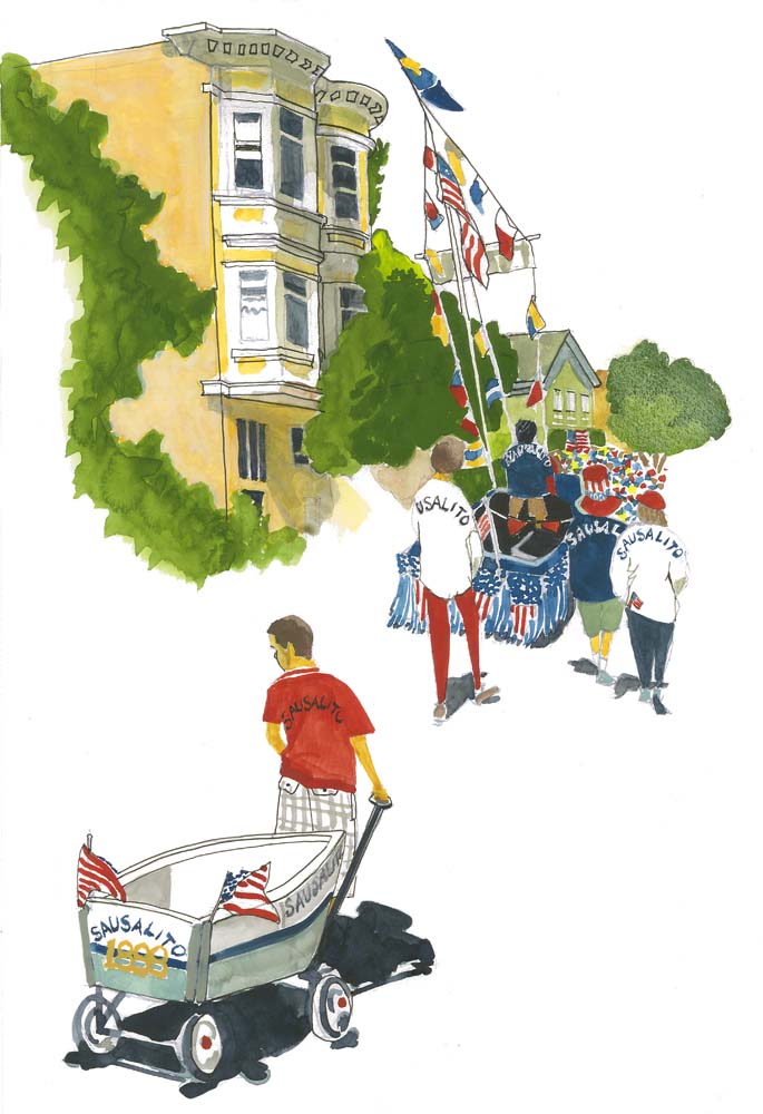 a character sketch of a unique California destination, is full of surprises and lively narrative. The whole family will enjoy this delightfully illustrated portrait of the town where the Golden Gate Bridge ends, whether they already know and love Sausalito or would like to visit some day. 64 pages, with over 85 color illustrations. The book is available at Holton Studio.