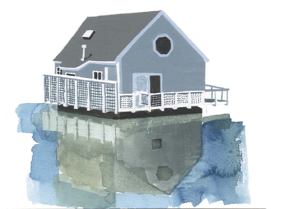 - “Houseboat Heaven” 8 1/2″ x 14,” $250.