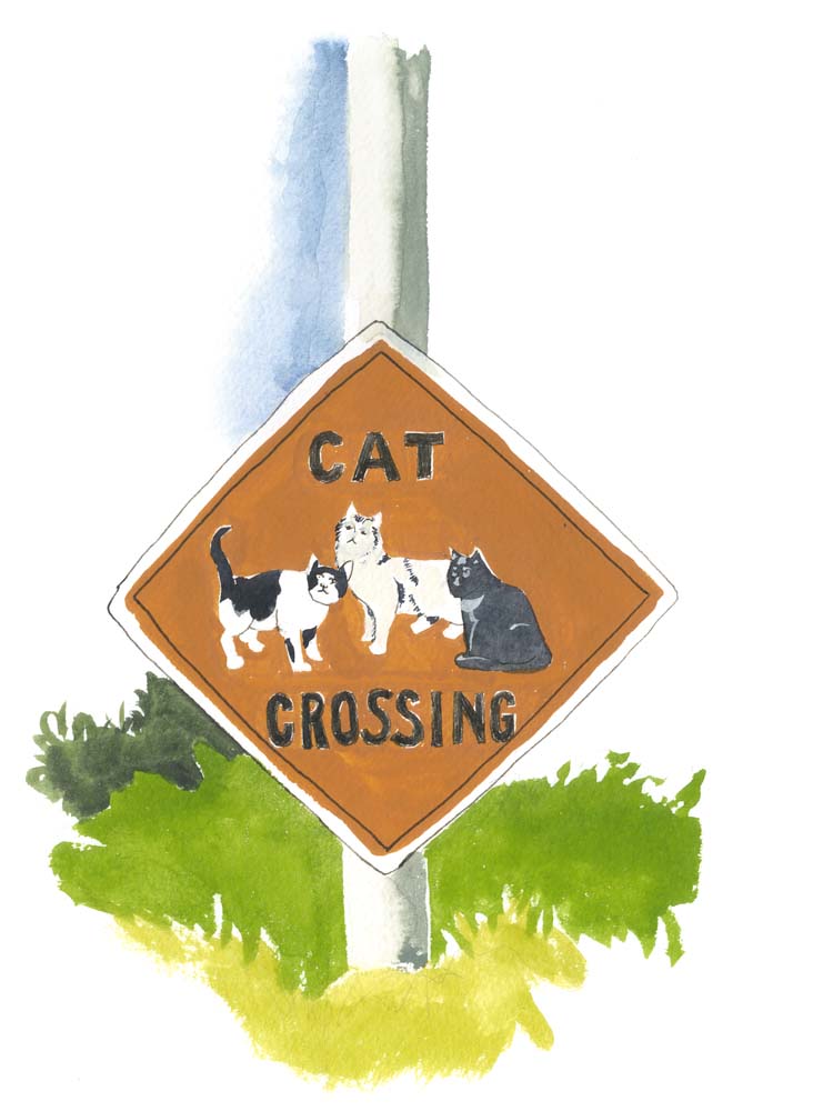 - “Cat Crossing,” 11 1/2″ x 8 1/2,” SOLD.
