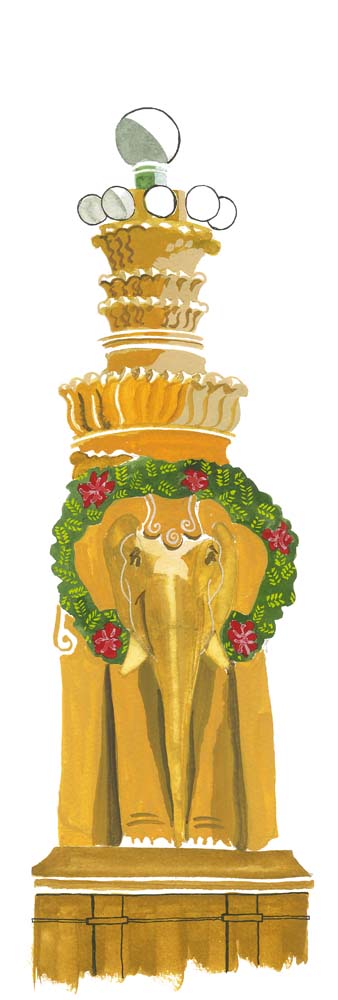 - “Dressed-up Elephant,” 13″ x 6 1/4,” $250 w/mat.