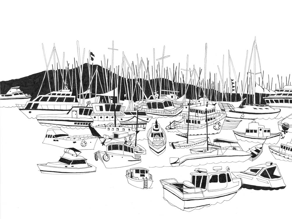 - “Harbor Boats,” 12 1/4″ x 19 3/4,” SOLD