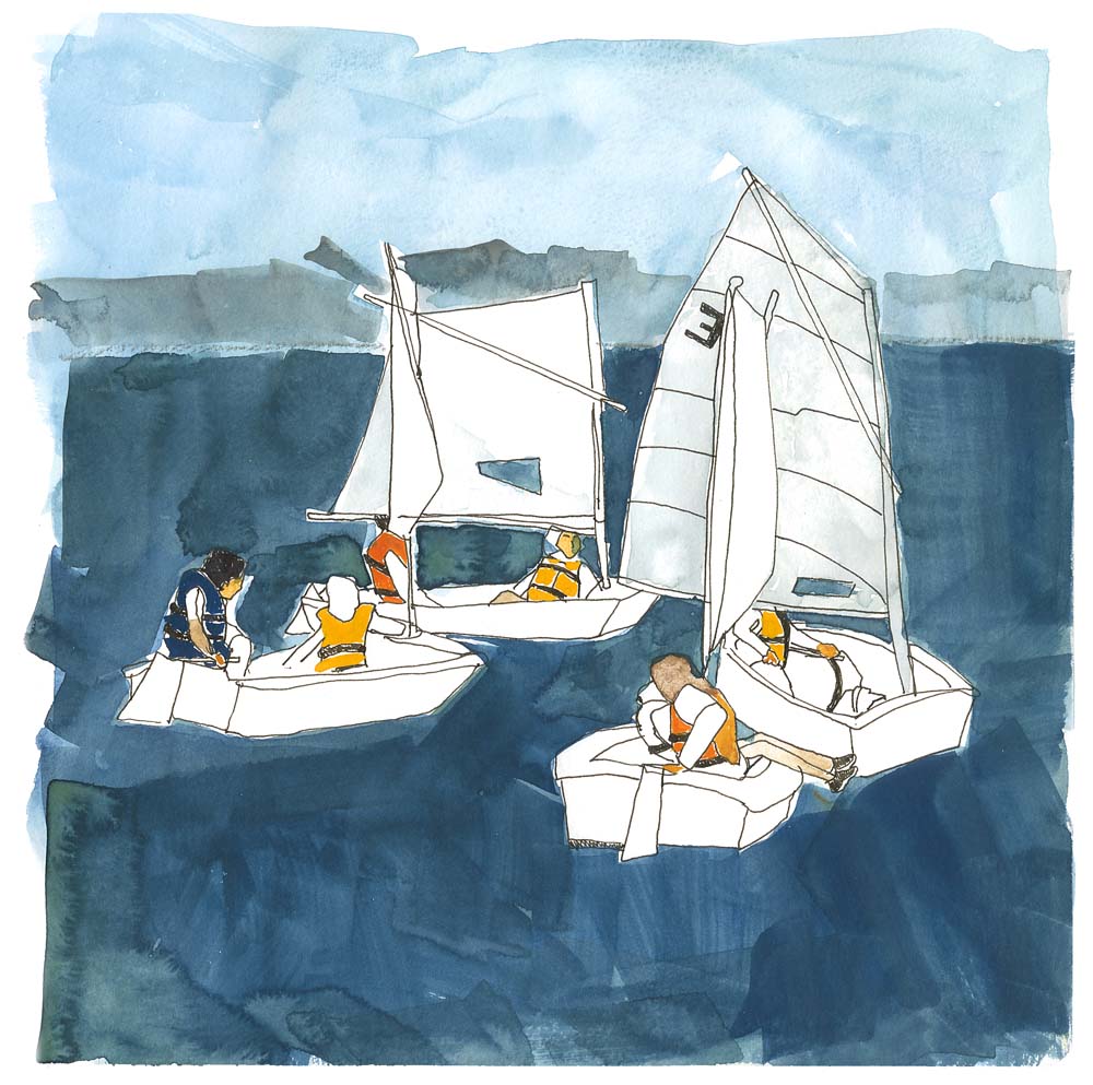 - “Junior Sailors,” 8 1/4″ x 8,” $450 framed.