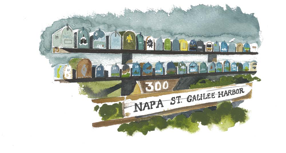 - “Mailboxes,” 12″ x 7 1/2,” $175.