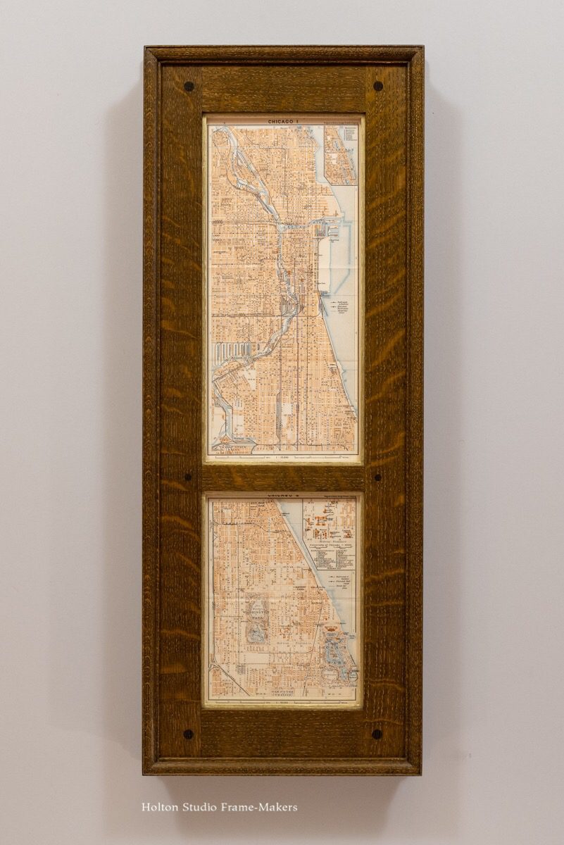 Karl Baedeker, Chicago maps, 1909 Compound Aurora (mortise-&-tenon), No. 1000— 1-3/4″ – 2″ + mitered cap molding No. 488. In quartersawn white oak with Van Dyke stain; 18kt gilt slip. Share this: Email a link to a friend (Opens in new window) Email Share on Facebook (Opens in new window) Facebook Share on X (Opens in new window) X Share on Tumblr (Opens in new window) Tumblr Share on Pinterest (Opens in new window) Pinterest